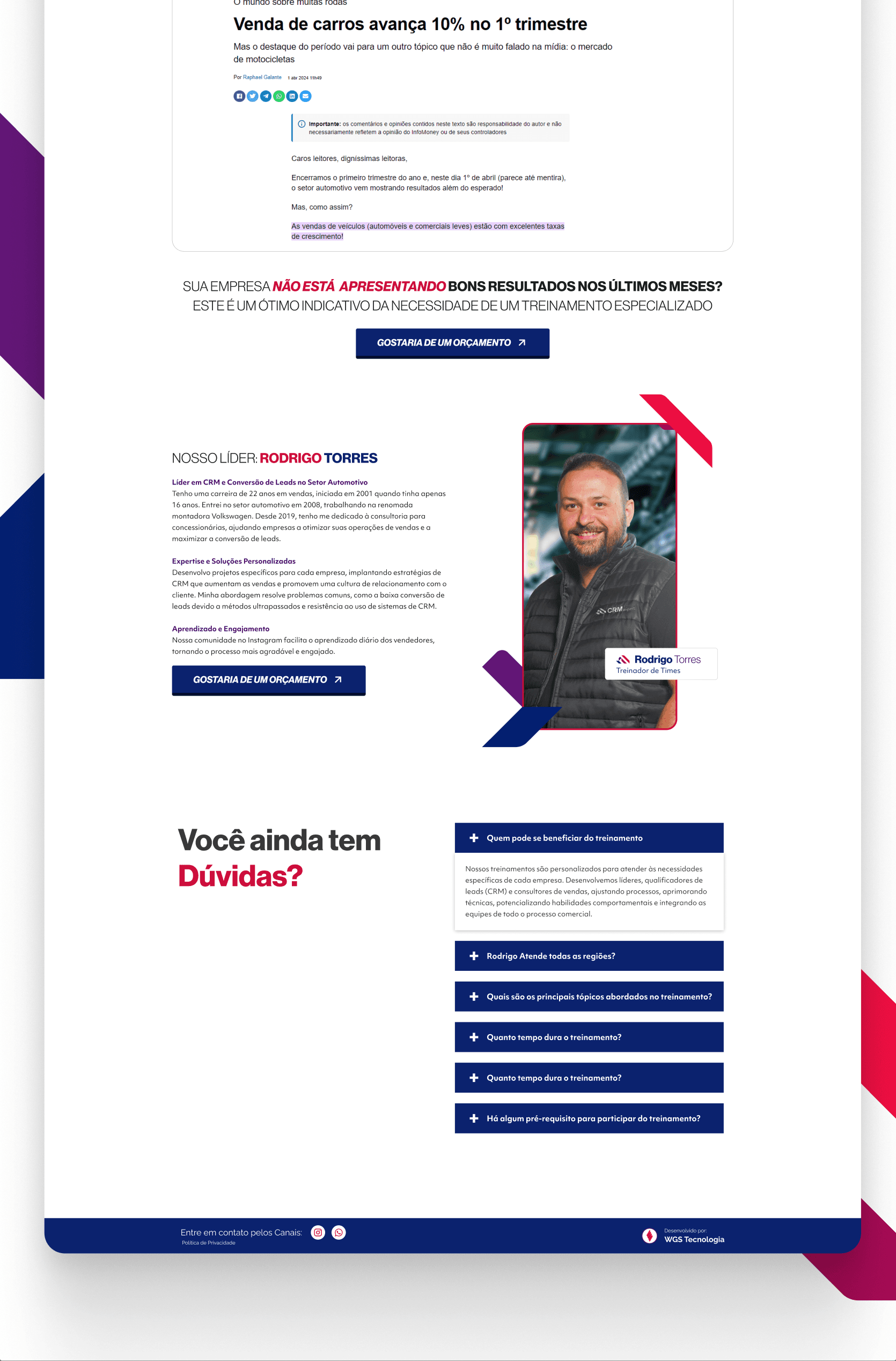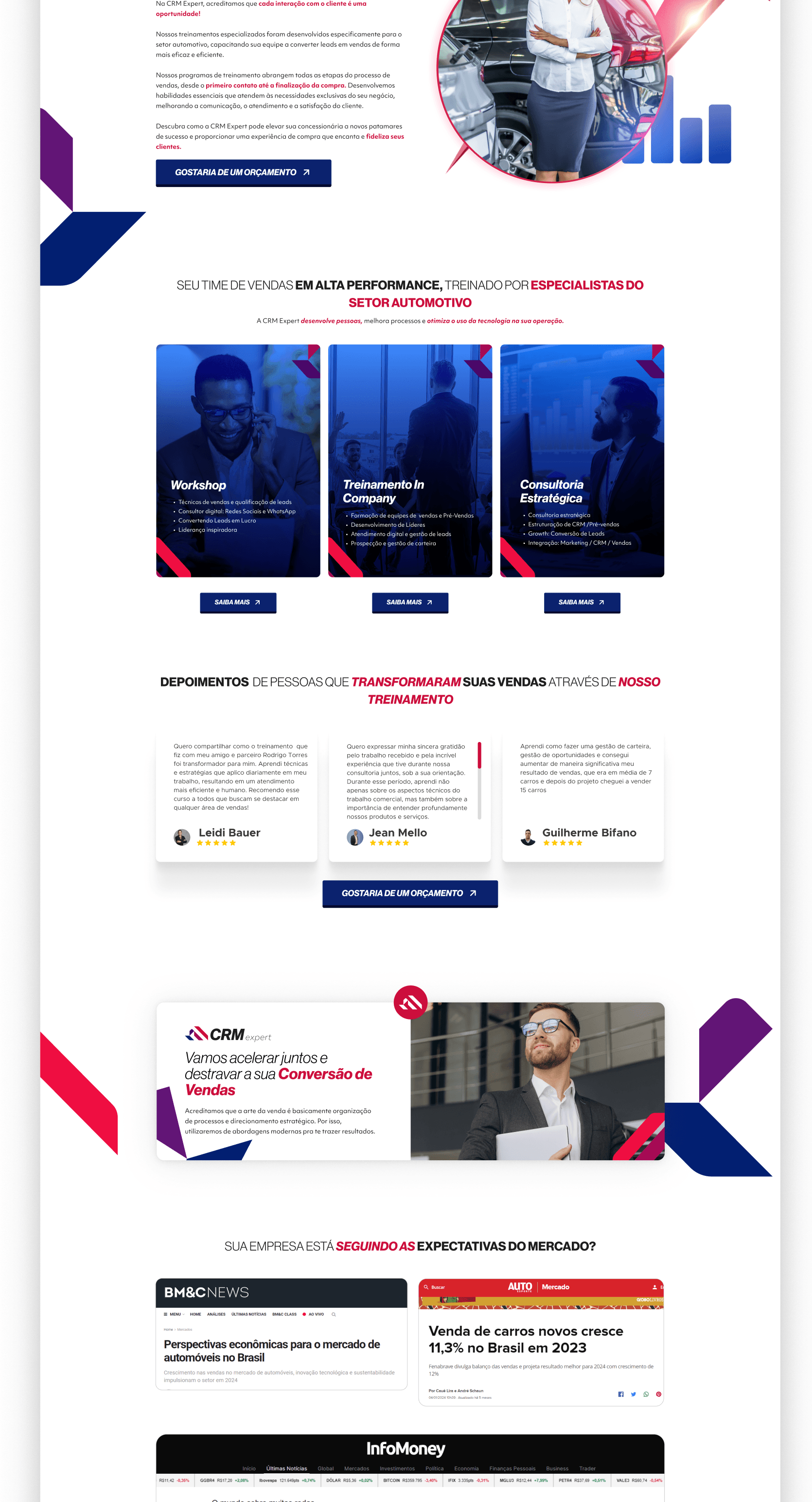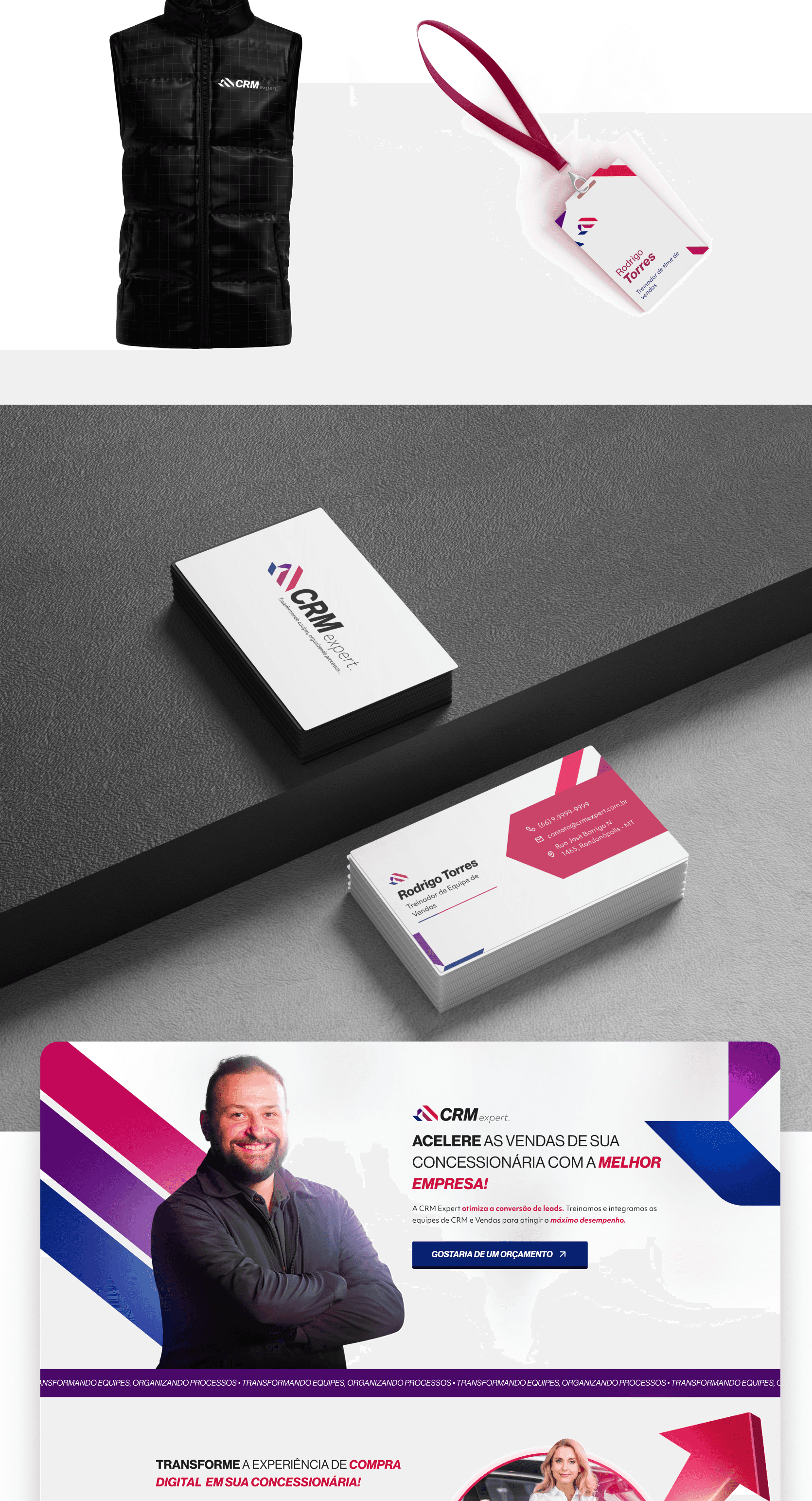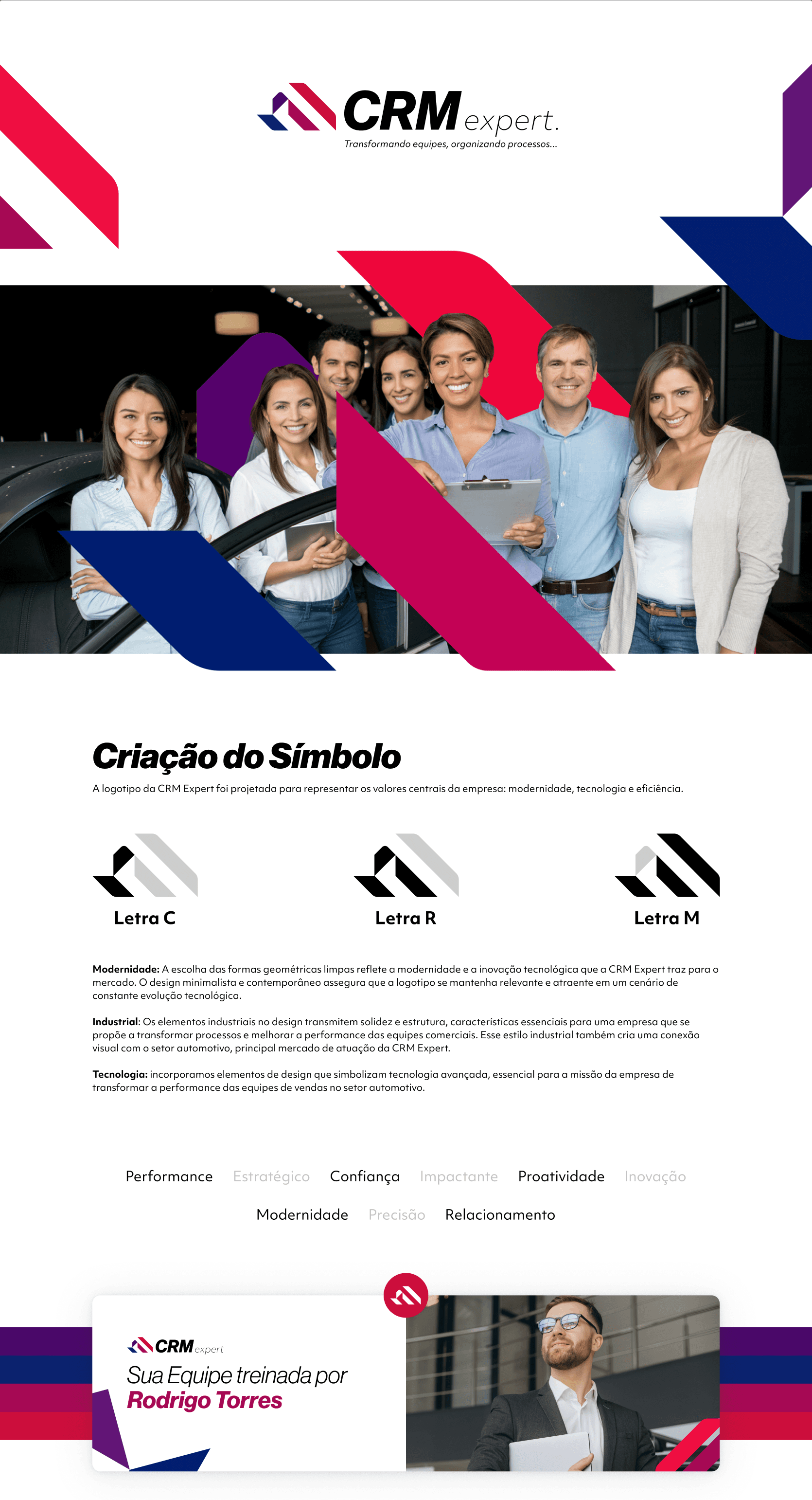 A CRM Expert precisava se posicionar com autoridade no mercado automotivo โ um setor competitivo e pouco diferenciado visualmente. O especialista Rodrigo Torres jรก acumulava resultados expressivos com treinamentos de vendas, mas sua presenรงa online era inconsistente, e a marca carecia de uma identidade forte que comunicasse confianรงa, tecnologia e performance.