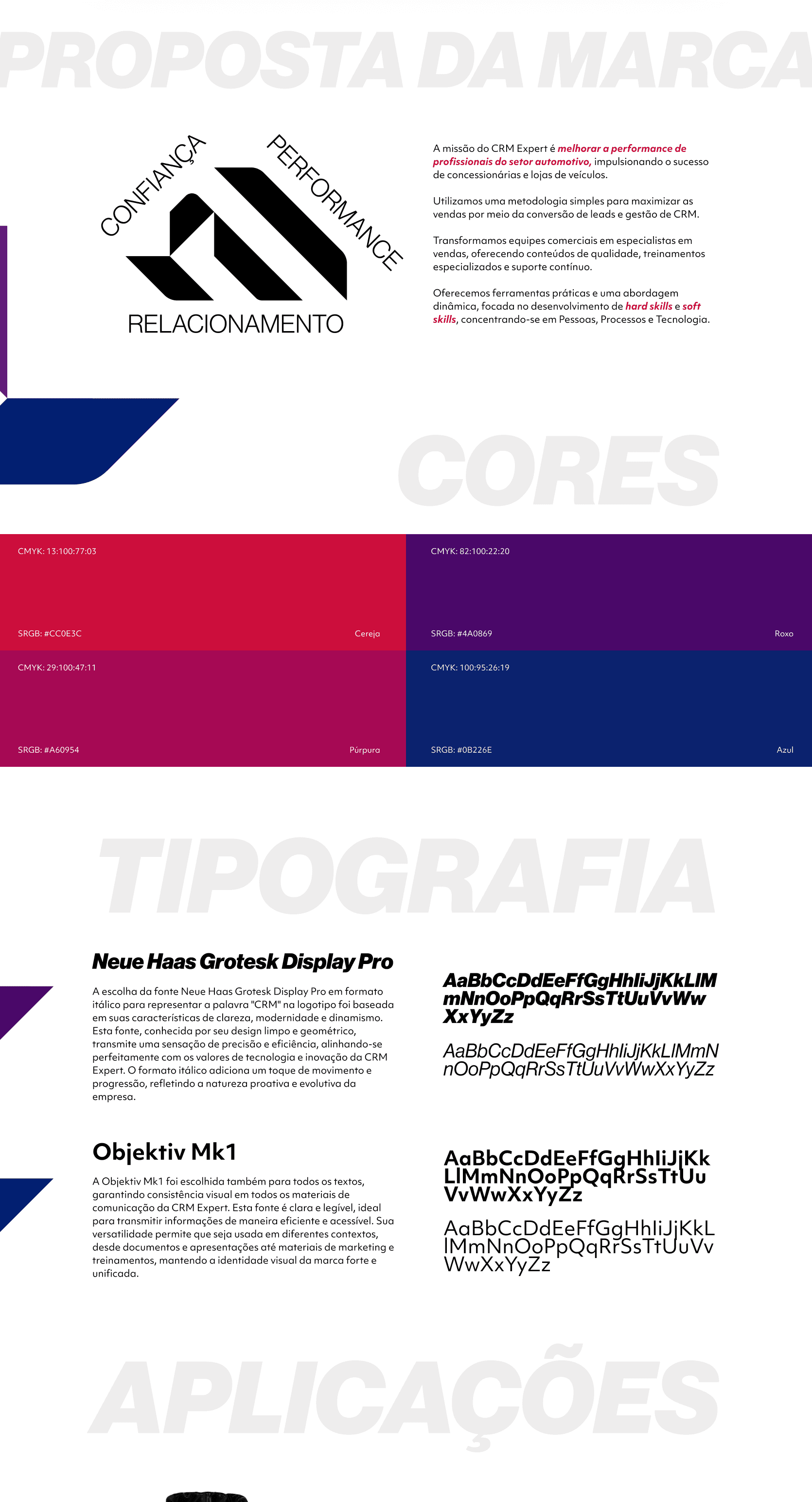 Toda a linguagem foi pensada para alinhar modernidade com solidez, refletindo o tripรฉ da CRM Expert: