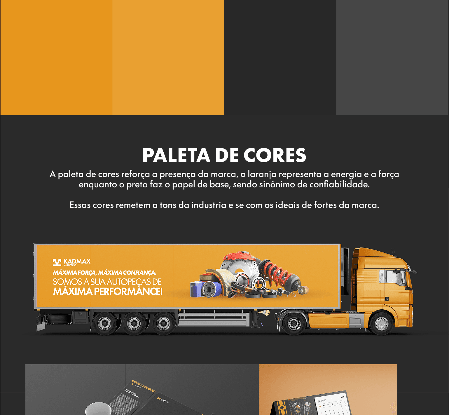 Inspirada no universo industrial e automotivo, a identidade visual foi construída para refletir potência, confiabilidade e alto desempenho — atributos centrais da nova fase da Kadmax.